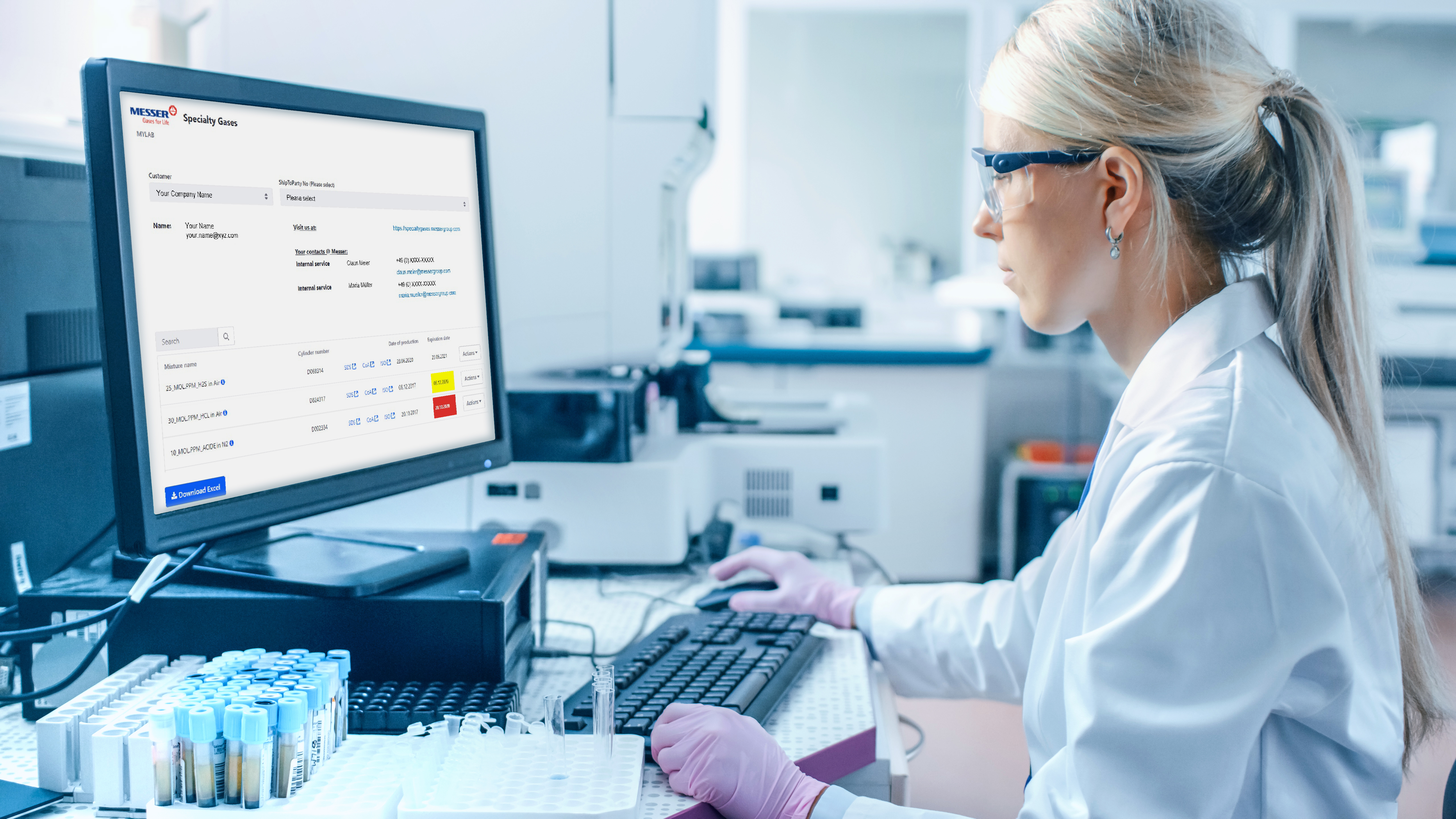 Safety is always a top priority. Messer provides information on gas properties, the safe handling of gases and gives safety instructions. Customers using a high number of calibration gases, e.g. in a laboratory, can benefit from the online management tool myLab.